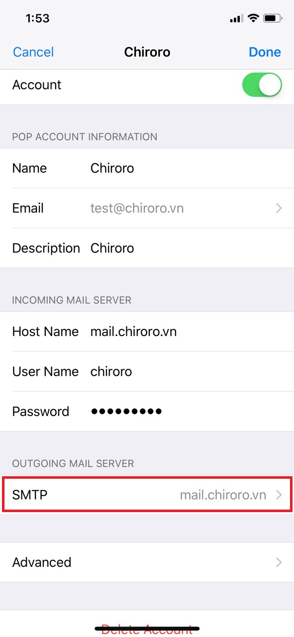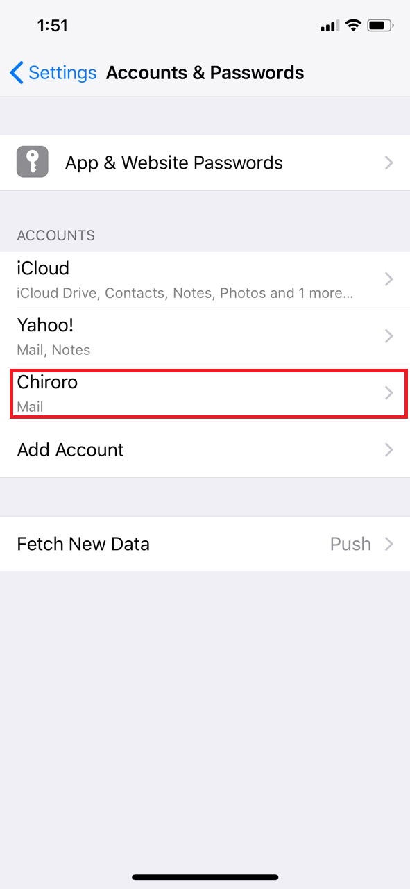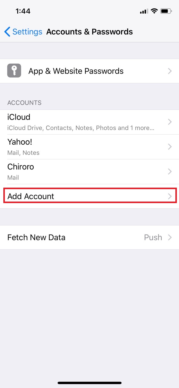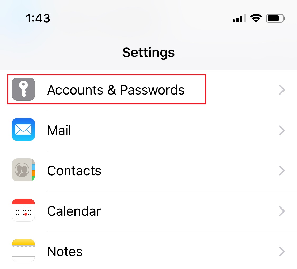 1. Choose “Setup” then choose “Acounts and Passwords”.